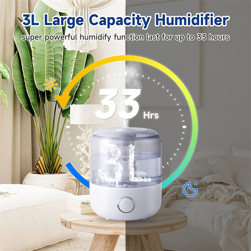 - Effective Humidification: The 3L capacity ensures extended operation, effectively adding moisture to the air and preventing dryness.