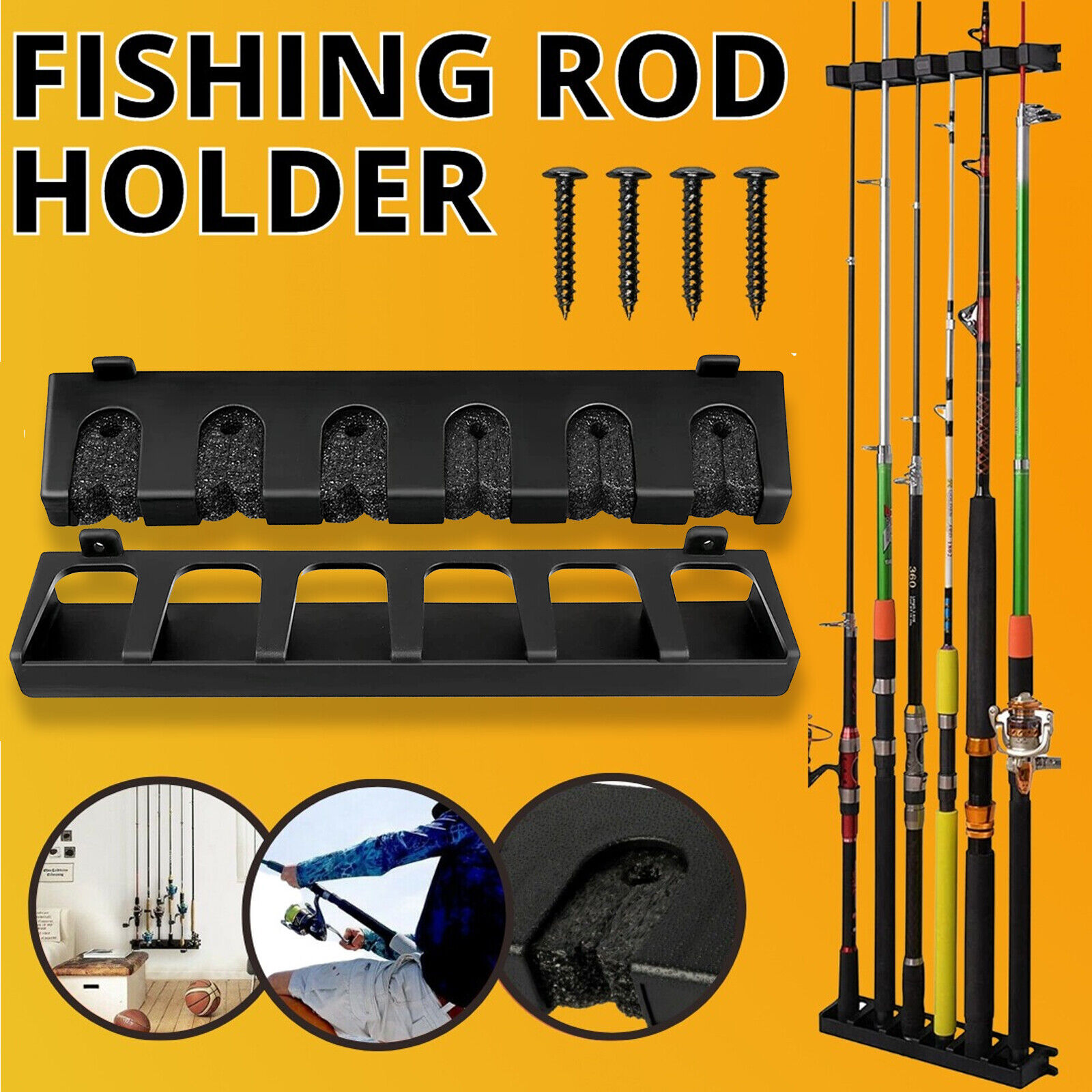 The Fishing Rod Rack by KT Deals is a vertical rod holder designed for wall mounting, boat storage, or pole hanger stand storage. It can safely store up to 6 fishing rods, providing a secure and organized solution for anglers.